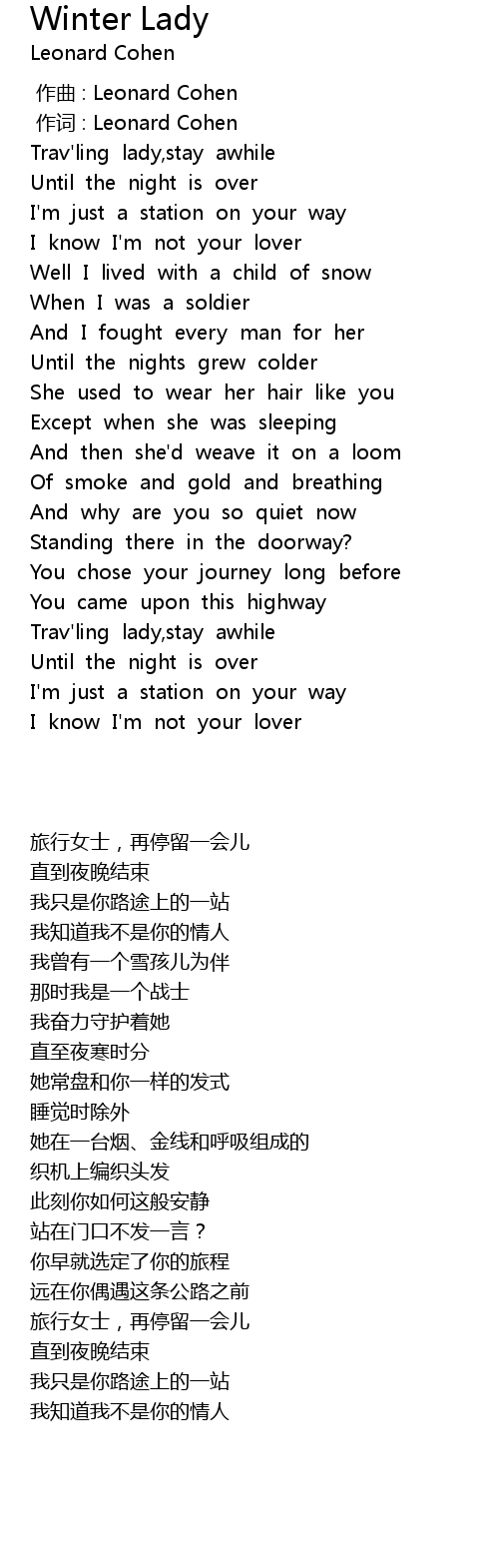 | [00:00.00] | 作曲 : Leonard Cohen |
