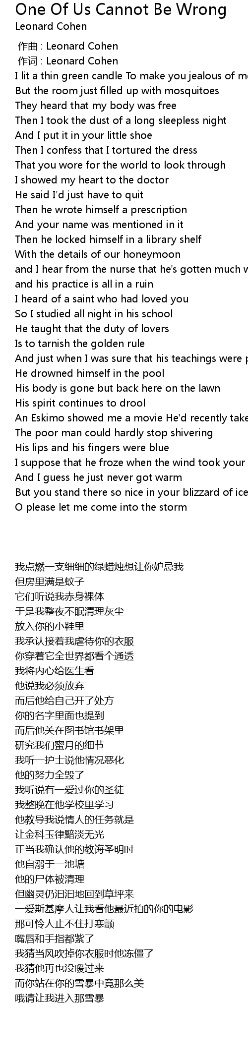| [00:00.00] | 作曲 : Leonard Cohen |
