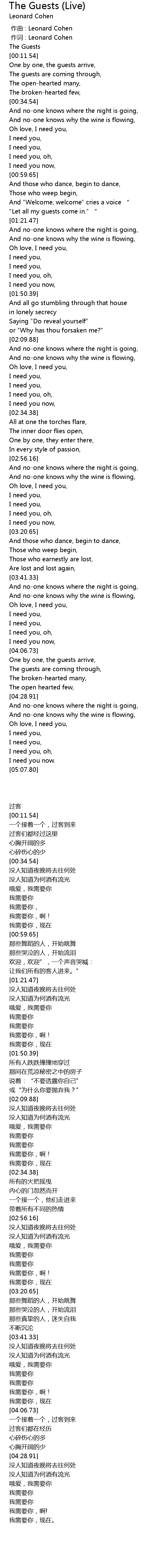 | [00:00.688] | 作词 : Leonard Cohen |