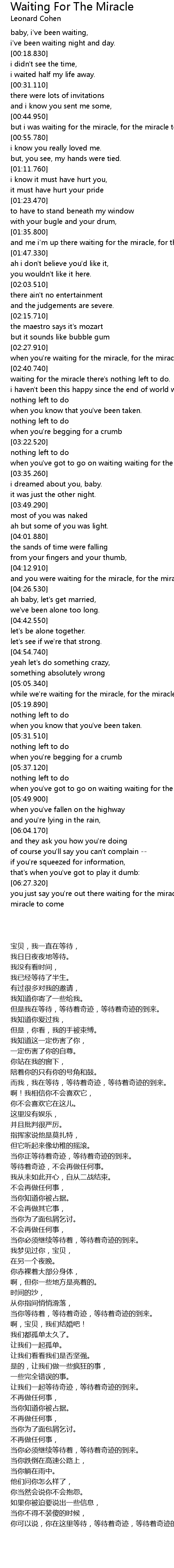 but i was waiting for the miracle, for the miracle to come. |