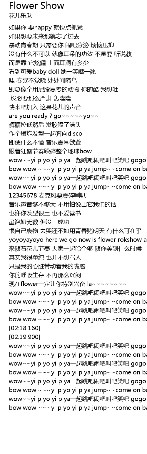 | [01:39.289] | yoyoyayoyo here we go now is flower rokshow all the boyand girl |