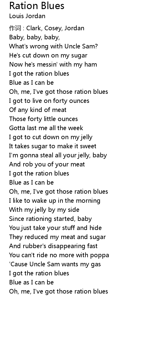 | Oh, me, I' ve got those ration blues | |