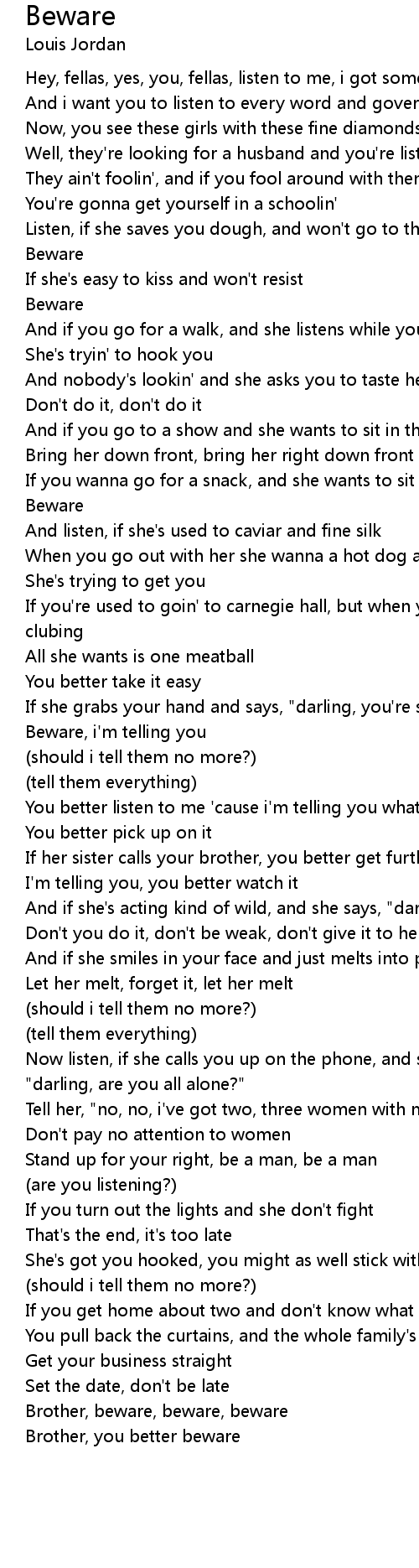Hey, fellas, yes, you, fellas, listen to me, i got something to tell you