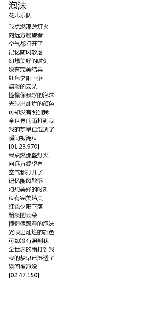 | [02:14.560] | 憧憬像飘浮的泡沫 |