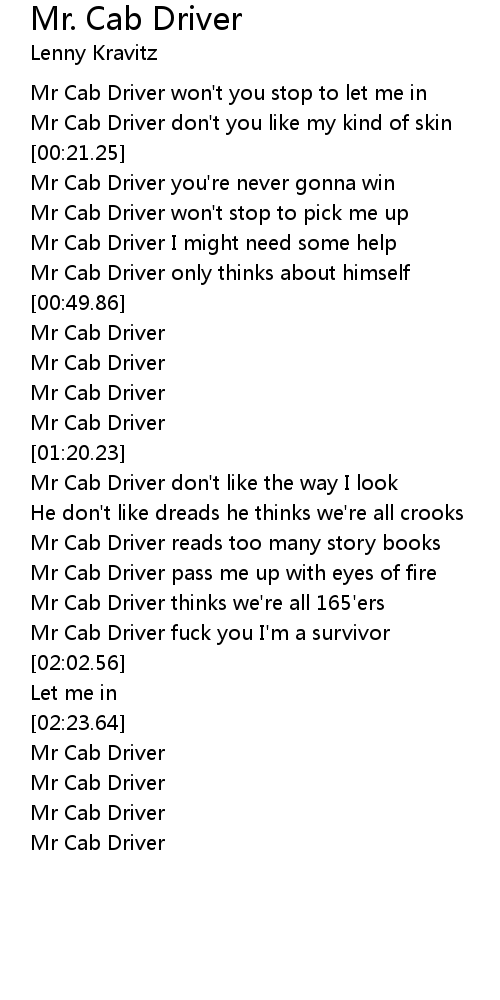 Mr Cab Driver you're never gonna win |
