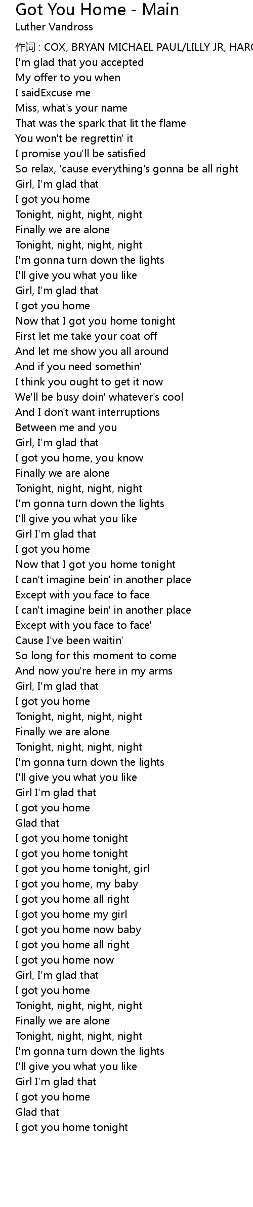 | I got you home tonight, girl | |