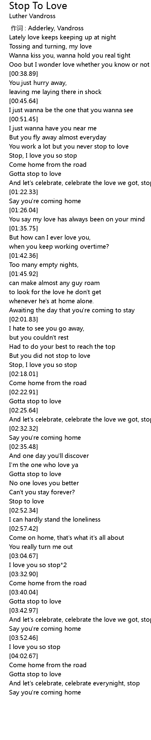 | [02:50.71] | Stop to love |