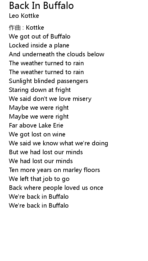 | 歌曲 | Back In Buffalo |