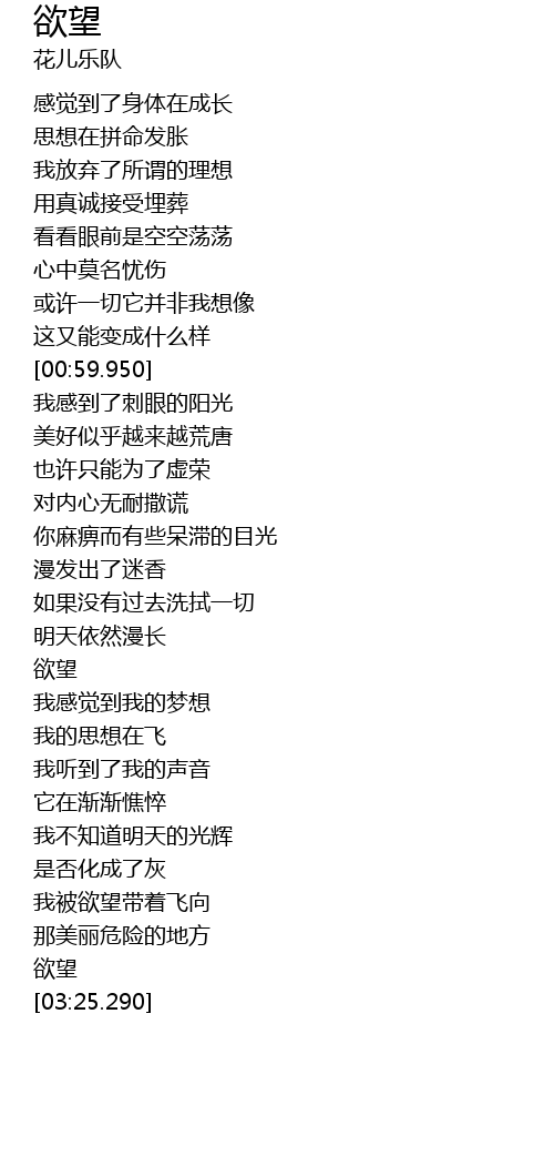 | [01:43.800] | 欲望 |