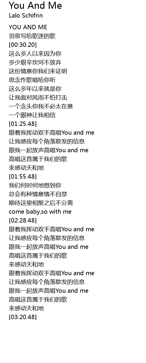 | [03:00.48] | 跟着我挥动双手高唱You and me |
