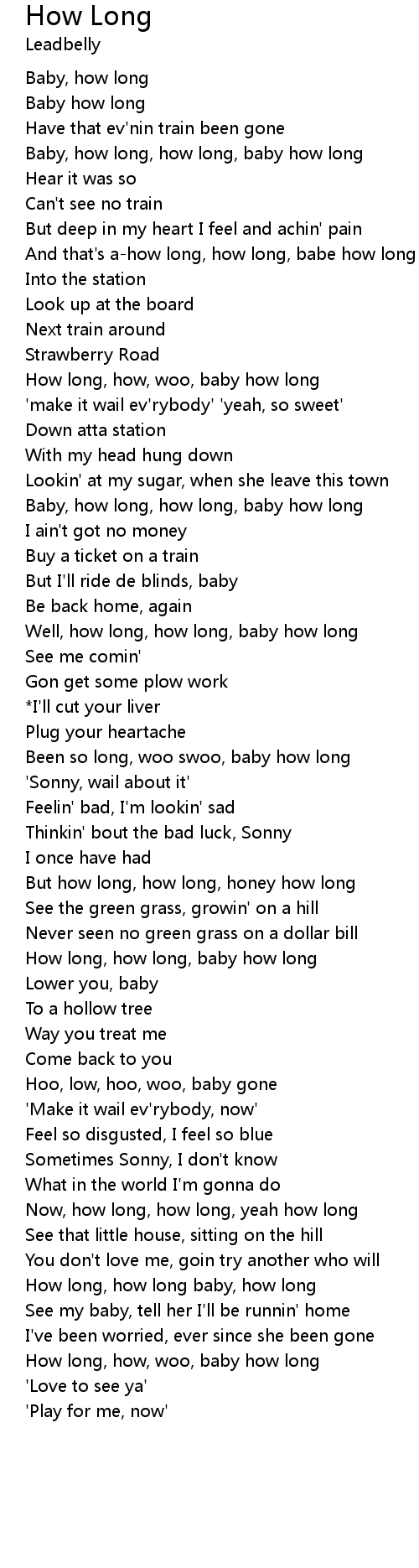 How long, how long, baby how long