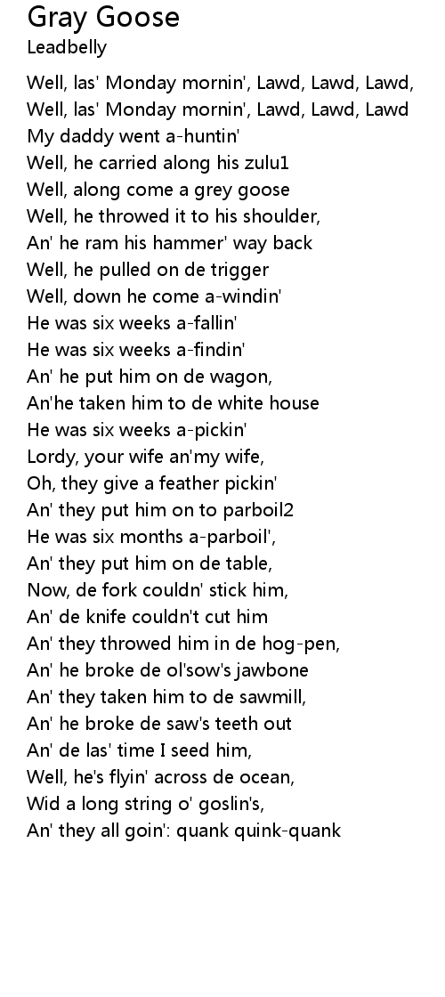 Well, along come a grey goose |