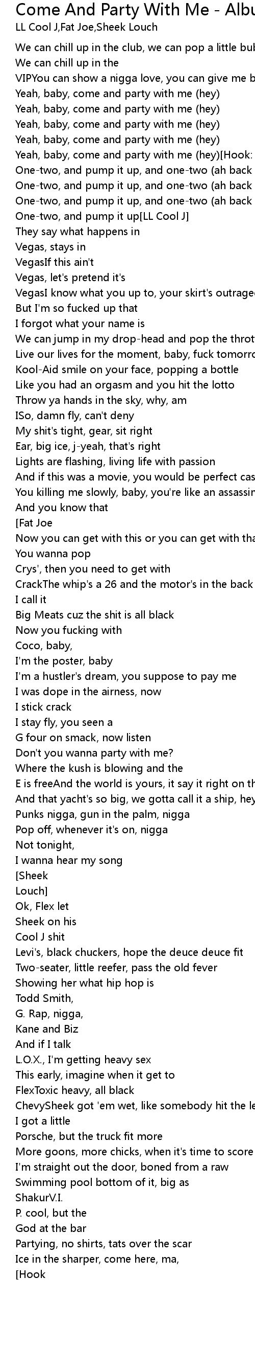 | Yeah, baby, come and party with me (hey)[Hook: LL Cool J (girl)] | |