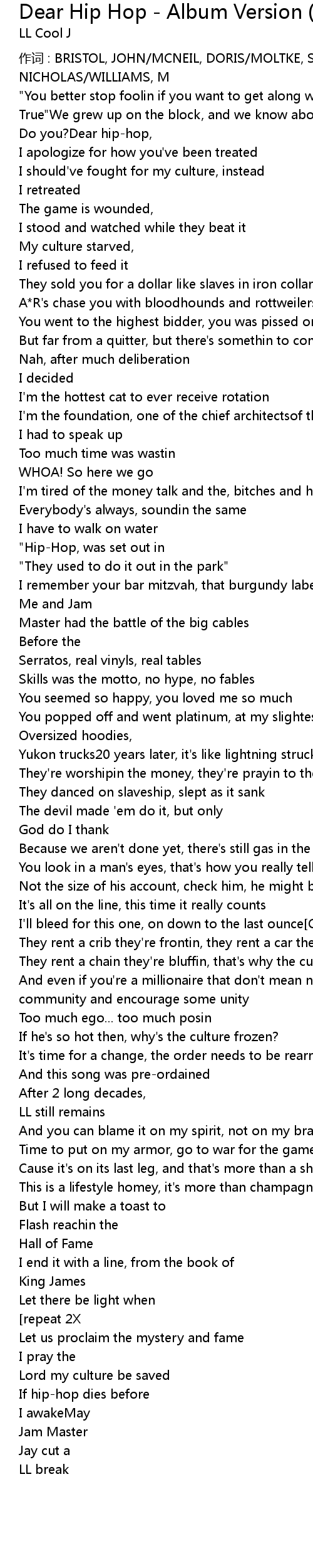 Dear Hip Hop - Album Version (Explicit) 歌词