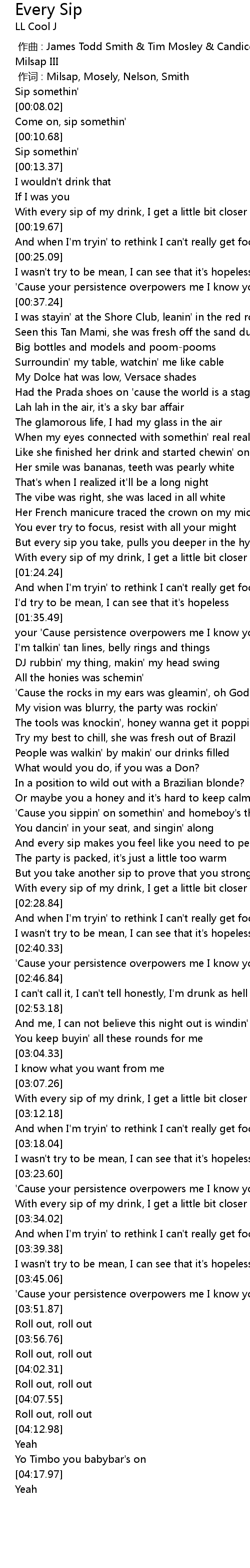 | [00:16.79] | With every sip of my drink, I get a little bit closer |