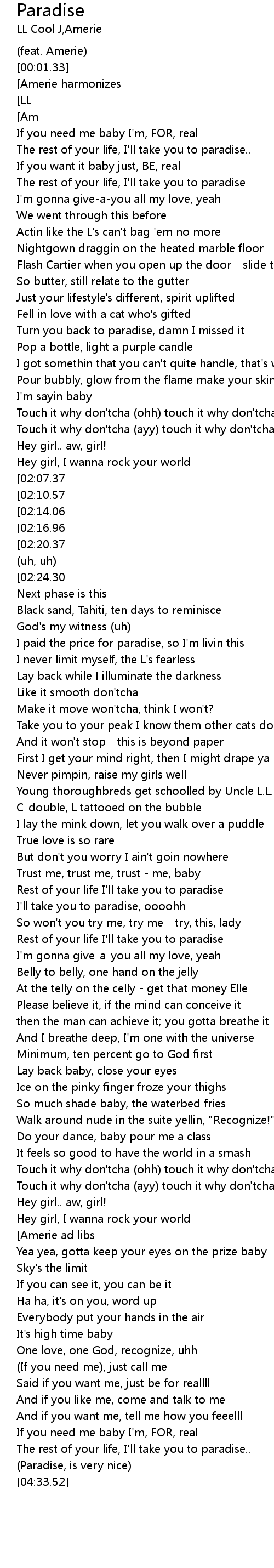 | [02:33.67] | I'll take you to paradise, oooohh |