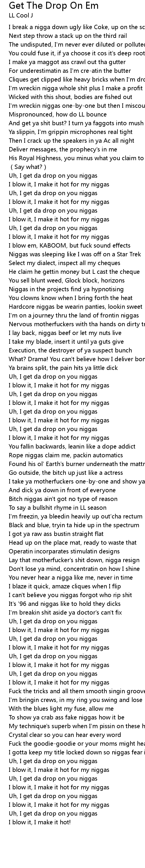 | Uh, I get da drop on you niggas | |