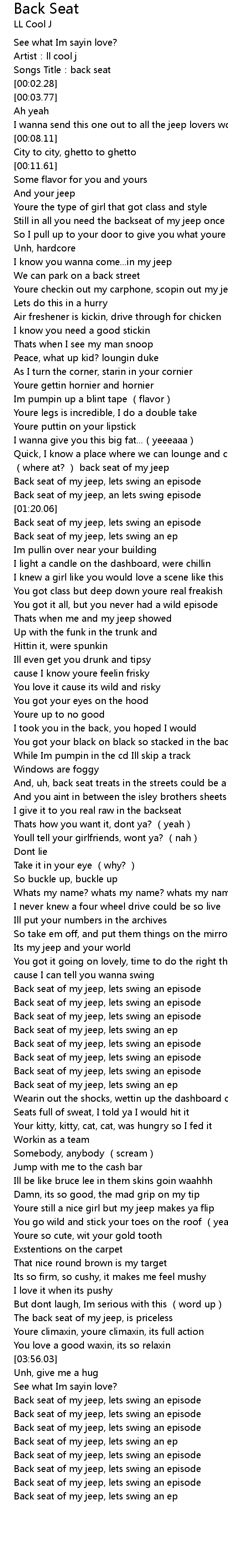 | [00:01.51] | Songs Title: back seat |
