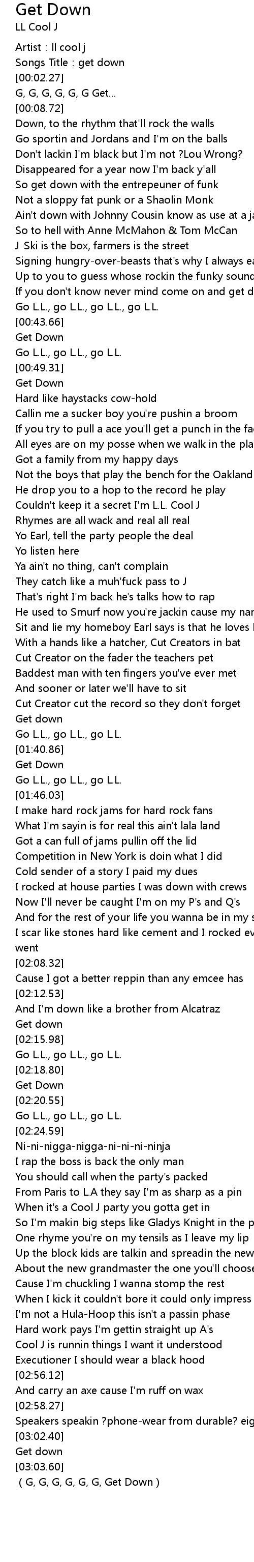 | [01:07.09] | Couldn't keep it a secret I'm L.L. Cool J |
