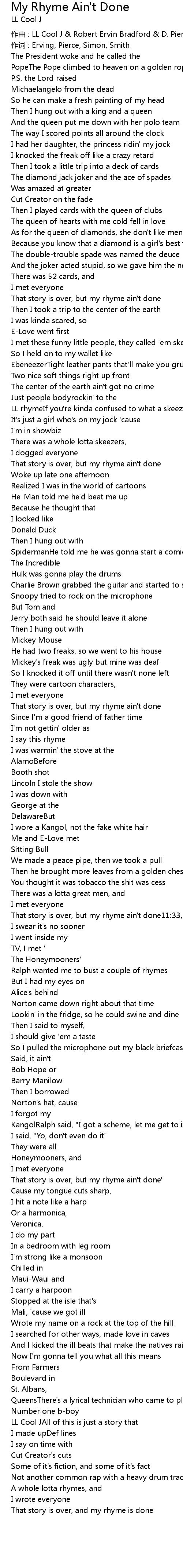 | That story is over, but my rhyme ain' t done11: 33, | |