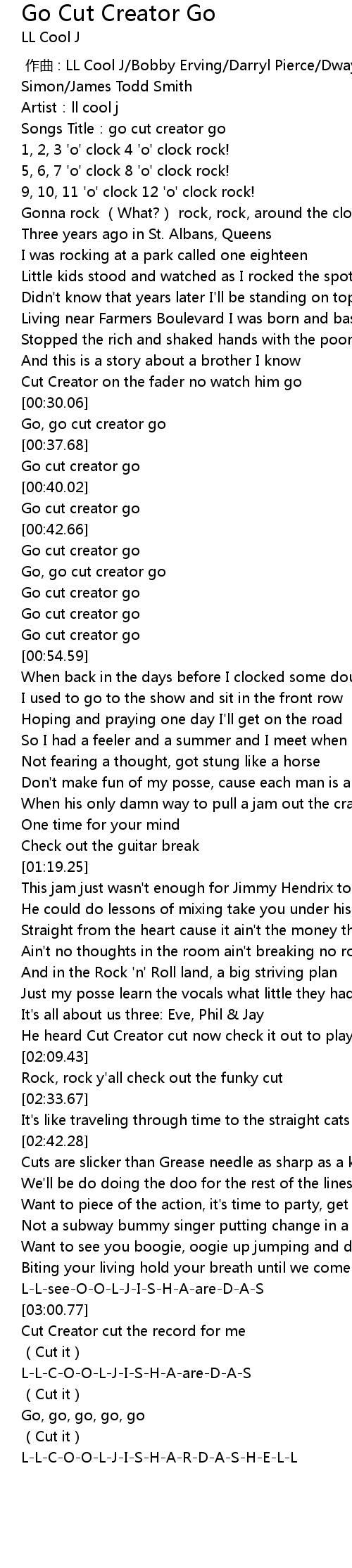 | [02:07.48] | He heard Cut Creator cut now check it out to play |