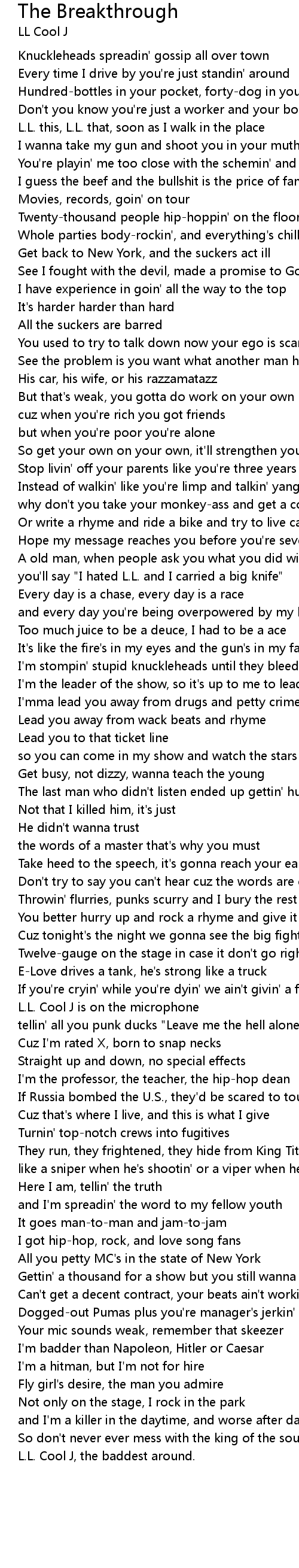 you'll say "I hated L.L. and I carried a big knife"