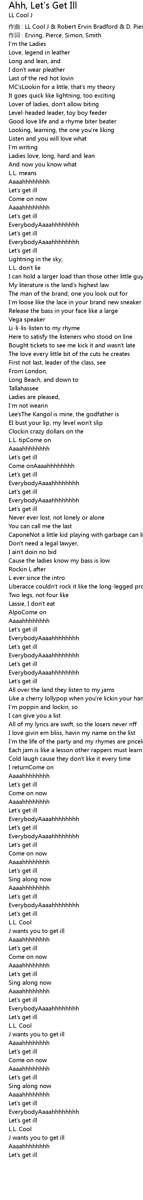 | 歌曲 | Ahh, Let's Get Ill |