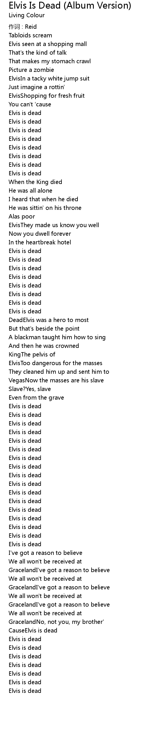 | 歌曲 | Elvis Is Dead (Album Version) |