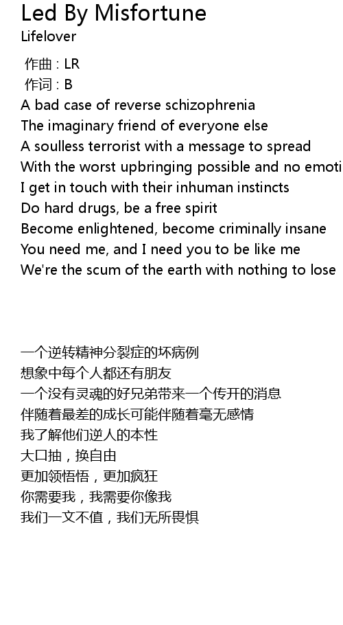 | [00:40.51] | A bad case of reverse schizophrenia |