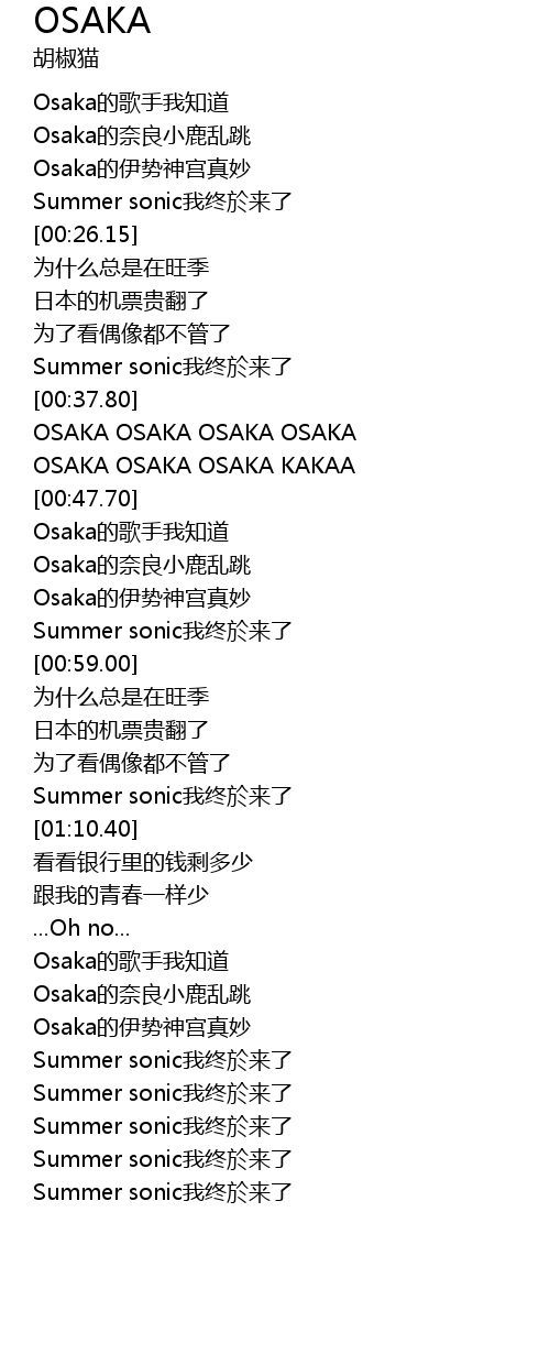 | [00:38.50] | OSAKA OSAKA OSAKA OSAKA |