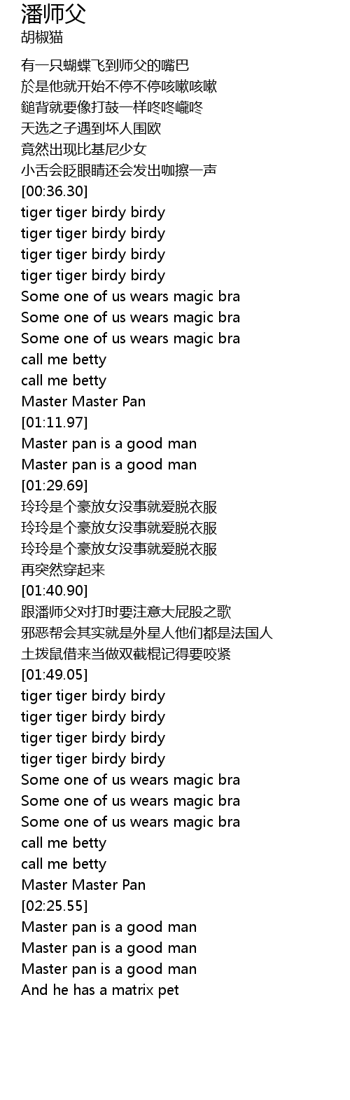 | [01:41.59] | 跟潘师父对打时要注意大屁股之歌 |