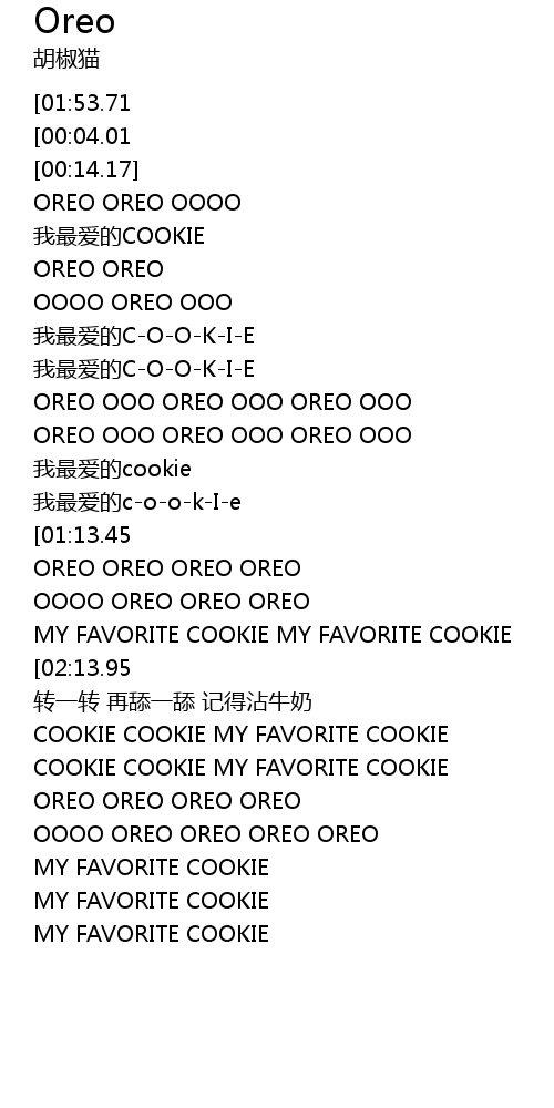 | [02:57.49] | OOOO OREO OREO OREO OREO |