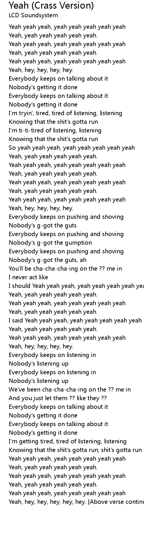 Yeah yeah yeah, yeah yeah yeah yeah yeah |