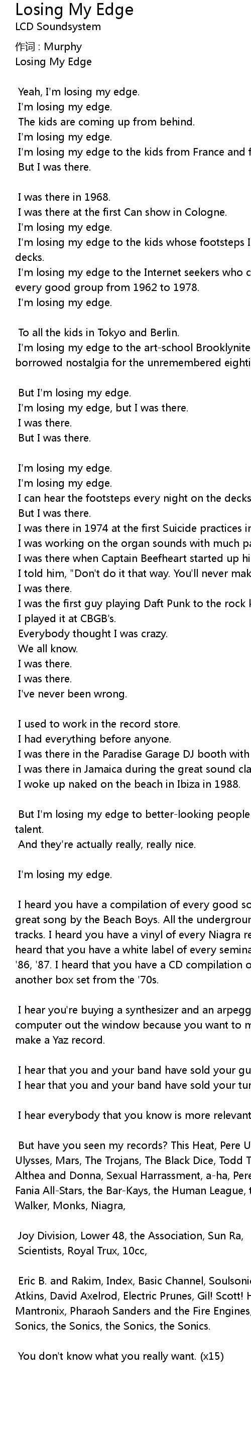 | 歌曲 | Losing My Edge |