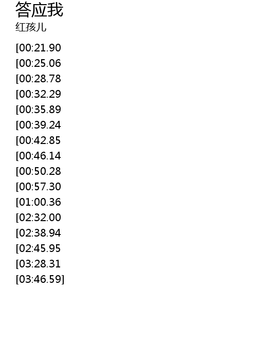 | [03:00.12][02:32.00][01:04.30] | 答应我挡住你的难过不要说 |