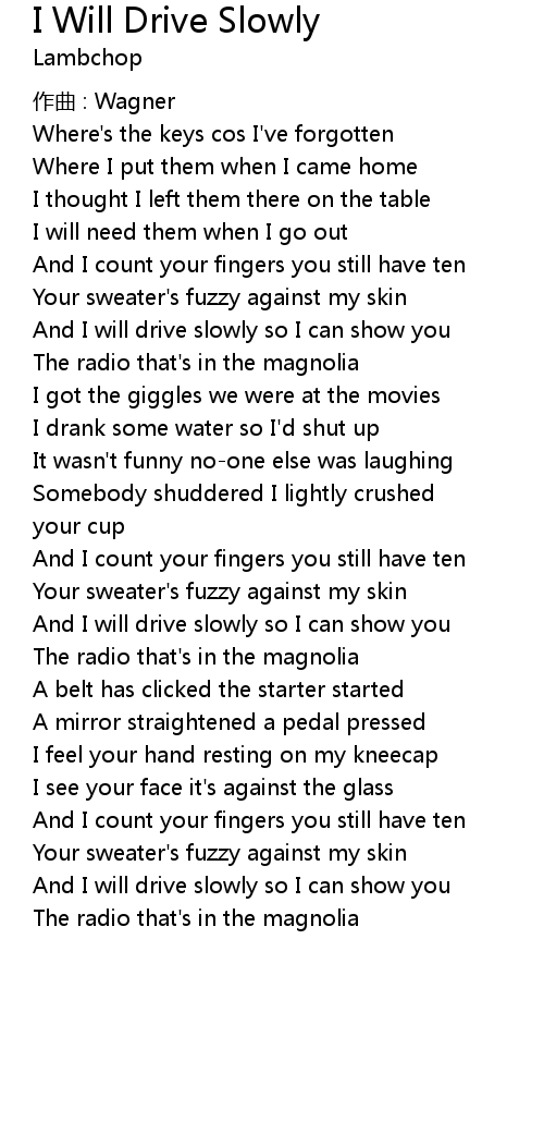 | 歌曲 | I Will Drive Slowly |