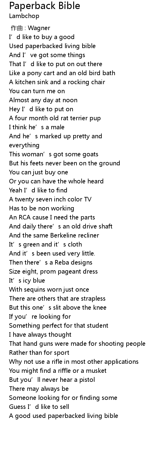 | [01:22.73] | A kitchen sink and a rocking chair |