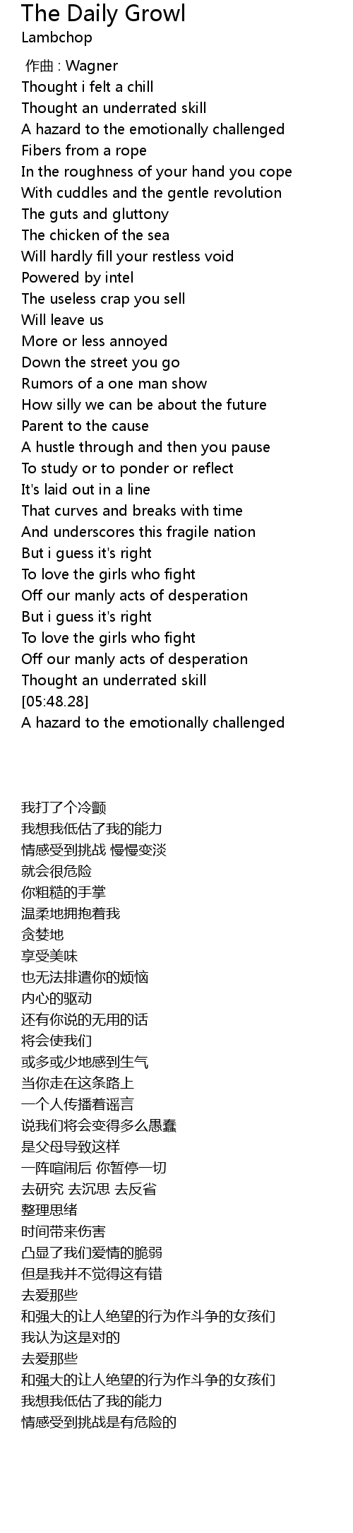 | [05:53.86] | 情感受到挑战是有危险的 |