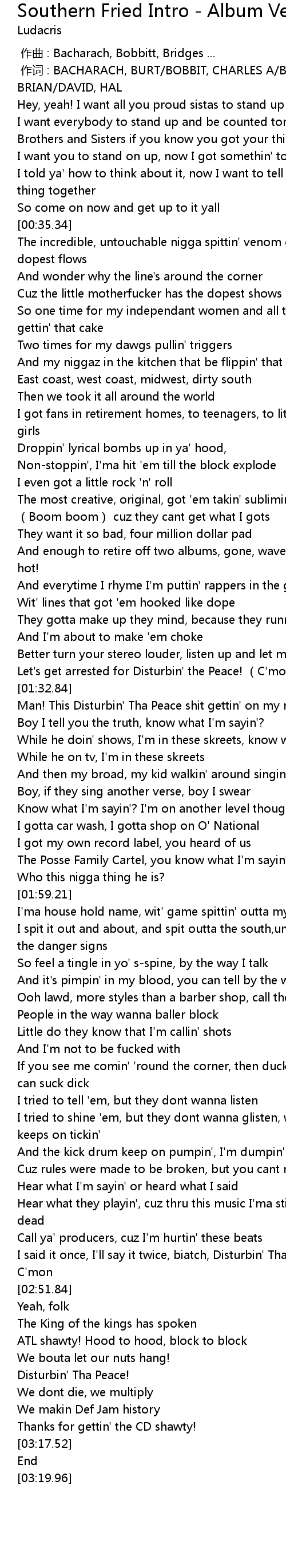 | 歌曲 | Southern Fried Intro - Album Version (Explicit) |