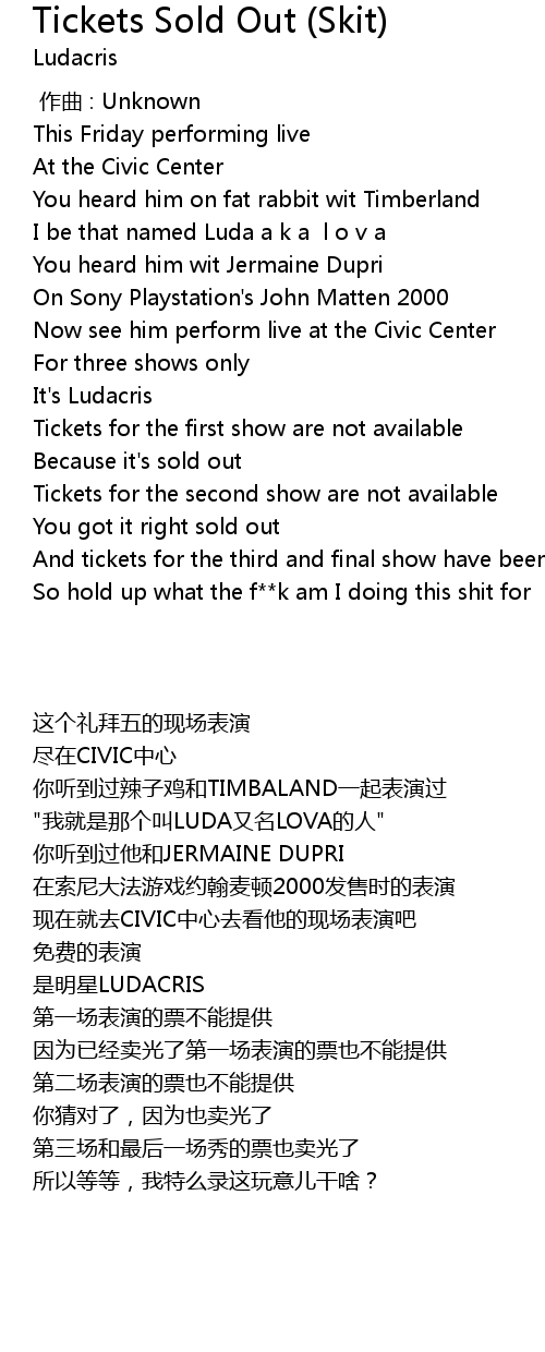 | [00:21.48] | Tickets for the second show are not available |