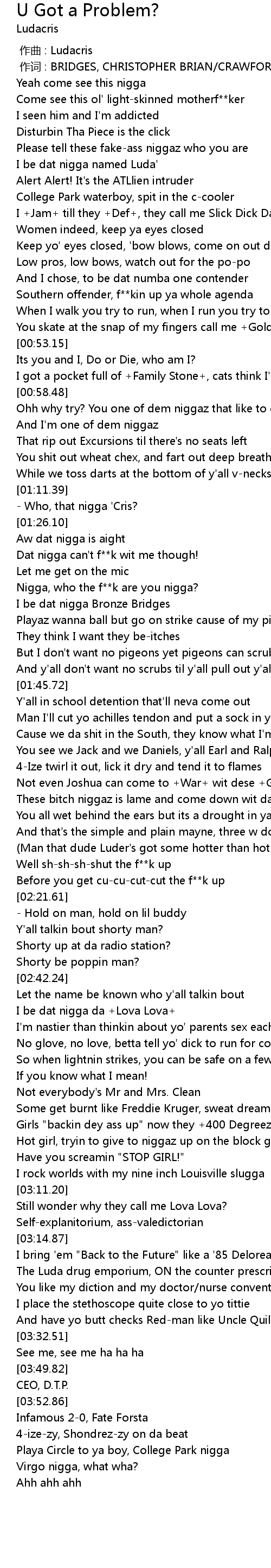 | [00:24.07] | I be dat nigga named Luda' |