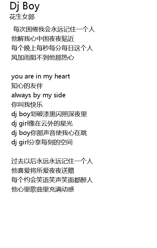 | dj boy nǐ nà shēng yīn shǐ wǒ xīn zài tiào | |
