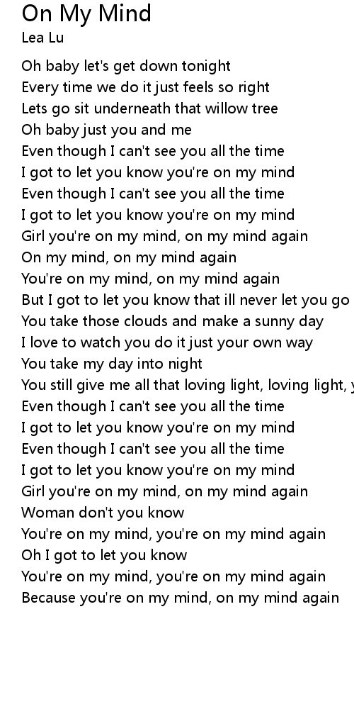 Because you're on my mind, on my mind again |
