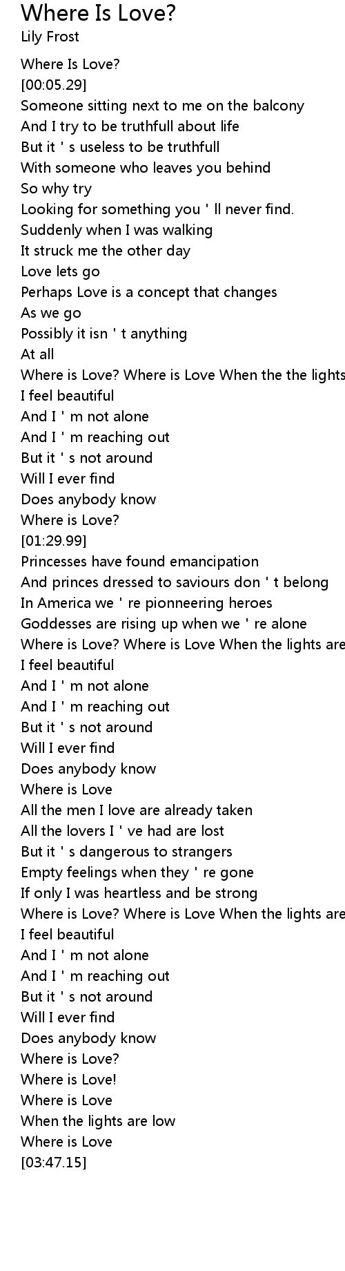 | [02:56.88] | Where is Love? Where is Love When the lights are Low |