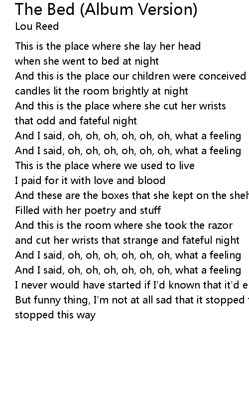 | [00:54.58] | And this is the place where she cut her wrists |