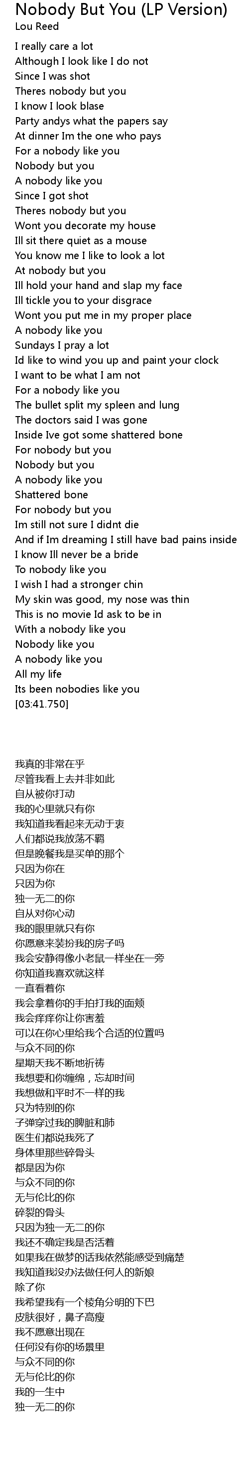 | [02:35.490] | Nobody but you |