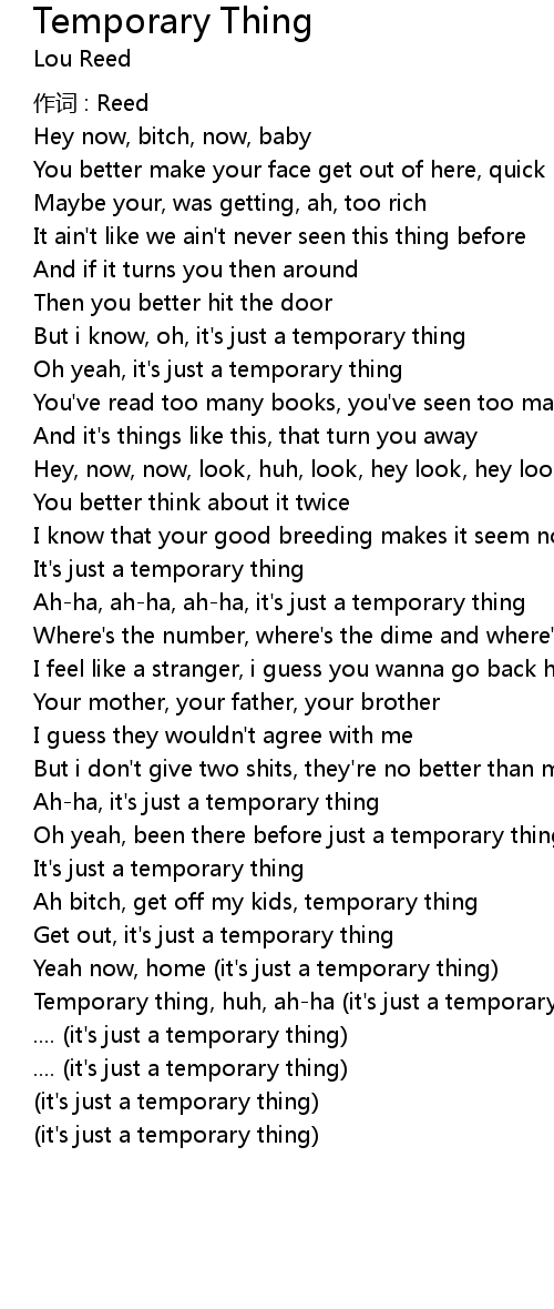| Temporary thing, huh, ahha it' s just a temporary thing | |