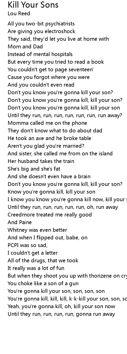 You're gonna kill, kill, kill, k-k-kill your son, son, son, son |