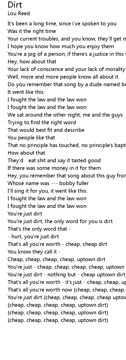 | You' re just dirt cheap, cheap, cheap, cheap uptown dirt | |