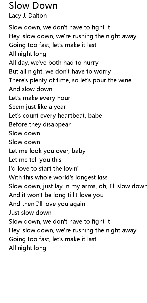 Slow down, just lay in my arms, oh, I'll slow down |